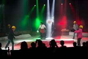 Das vierköpfige Live-Orchester von Axel Bozic untermalt mit seinem erstklassigen rockigen Sound die Aktionen in der Manege und ein vorzügliches Lichtdesign trägt sehr zum Gelingen der Show bei.