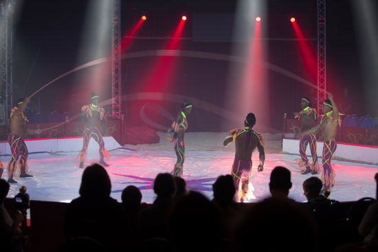 Mit zwei Auftritten ist die Truppe Moros vom kubanischen Staatscircus zu erleben. Zunächst arbeiten die sieben Artisten eine manegefüllende Kombination aus Handvoltigen und Reckakrobatik. Zwischen den beiden Recks hängt in einiger Höhe ein Fangstuhl, an dem zwei Fänger ihren Platz haben. Auf diese Weise erweitern sich die Möglichkeiten für die Voltigeure und schwungvolle Positionswechsel geben der Nummer Pep. Im weiteren Verlauf der Show präsentiert die Truppe eine schwungvolle Sprungseilnummer.