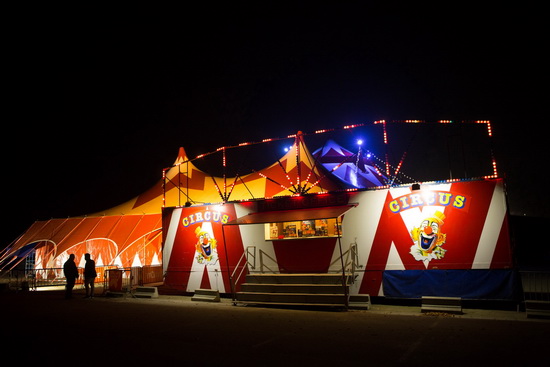 Moderne Zeltanlagen des englischen Bobby Roberts Circus, der seit einigen Jahren das technische Equipment des Festivals stellt, sind auf dem großen Circusplatz aufgebaut. Das Grand Chapiteau zeigt ein markantes rot-weißes Blockstreifendesign und ist mittels eines Tunnels mit dem farblich abgestimmten Vorzelt verbunden. Das Dekor des Kassenaufliegers korrespondiert perfekt mit dem Chapiteau. Leuchtelemente auf dem Dach der Kasse und Lichterketten an den Zelten transportieren Circusatmosphäre in die Nacht.