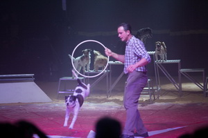 Guiliano Frank war mit seiner Hunderevue am ersten Wochenende des Festivals an Stelle von Peter Balder und seinen Hunden zu erleben. Sechs quicklebendige Hunde unterschiedlicher Größe zeigen spielerisch und mit Begeisterung ihr Können. Viele verschiedene Sprünge – durch Reifen, über Stühle, durch den Armbogen, übereinander – bilden das Rückgrat der Trickfolge.