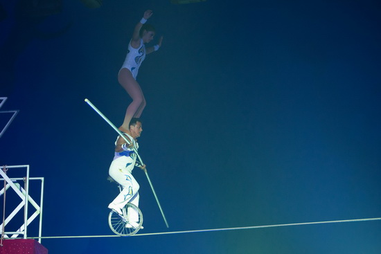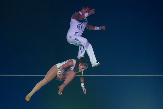 Das Duo Camadi ist vor der Pause mit seinem mitreißenden Act auf dem Hochseil zu erleben. Vater und Tochter gelangen über Schrägseile empor. Eine umfassende Auswahl attraktiver Tricks – u. a. Spagat, Seil springen, überspringen und Bocksprung über die Partnerin – wird in Perfektion ausgeführt. Joana steigt auf dem Seil auf die Schultern ihres Vaters und springt nachdem eine Strecke im Zwei-Mann-Hoch bewältigt wurde wieder auf das Seil ab. Feuchte Hände und spannungsgeladenes mitfiebern herrscht im Gradin beim einmaligen Spitzentrick des Duos, zu dem die beiden sympathischen Artisten das Hochseil auf dem Einrad im Zwei-Mann-Hoch überqueren.