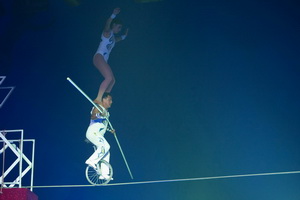 Das kubanische Duo Lyd ist ebenfalls zwei Mal in der Manege präsent. Das heutzutage recht selten zu sehende Genre der Fahrradartistik beherrscht das Duo in erstklassiger Weise. Viele Partnertricks werden in erstklassiger Ausführung geboten. Im zweiten Auftritt, am Chinesischen Mast begeistern die beiden Künstler mit einer Vielzahl kräftezehrender Tricks. Einige der Tricks, bei denen der Porteur außer dem eigenen auch das Gewicht der Partnerin zu tragen hat, lassen die Frage aufkommen, in welcher Art und Weise er den notwendigen Halt an der Stahlstange findet.