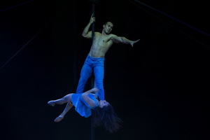Laserman Henrique Rigoletto bietet mit diesem, im Circus sehr jungen und modernen Genre einen fulminanten Einstieg in die Show und lässt die Stimmung im voll besetzten Rund steigen. Mit lautem Kreischen, Pfeifen und Johlen geben zumeist junge Besucher ein begeistertes Feedback auf die vielfach wechselnden Muster und überraschenden Variationen der abwechslungsreichen Light-Show.