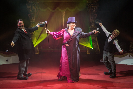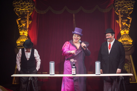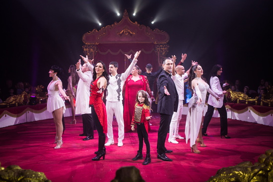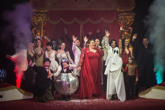 Im restlos ausverkauften Rund eröffnet „Madame Loyal“ Celia Berthier-Caroli die vorzügliche Show mit dem live gesungenen gleichnamigen Titelsong des Musicals „Cabaret“. Natürlich patzen die Auguste bei ihrem Auftritt und erscheinen im Overall und mit Besen in der Hand anstatt im Frack und mit Zylinder. Während die beiden Auguste flugs das Outfit ändern begrüßt Madame Berthier-Caroli eloquent und charmant das Publikum.