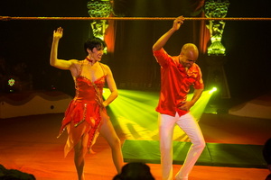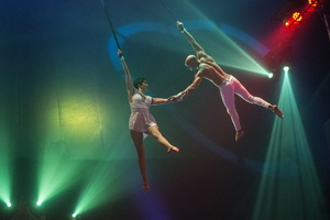 Yosvani Rodriguez arbeitet seine beiden Darbietungen nun gemeinsam mit seiner Partnerin. Zunächst sehen wir seinen Auftritt auf dem Schwungseil, der mit einer temperamentvollen Tanzszene des Paares zu südamerikanischen Rhythmen eingeleitet wird. Vorwärts-, Rückwärts- sowie ein Doppelsalto sind die Höhepunkte dieser dynamischen Darbietung. Im zweiten Programmteil erzählt das Paar eine Love Story an den Strapaten. Als „Duo Illusion“ arbeiten sie eine Reihe eleganter Partnertricks in der Kuppel des Chapiteau. Kraftvoll erfolgen die Halteposen und mit weiten Flügen wird der Raum über der Manege genutzt.