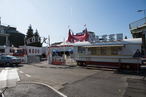 Im Verlauf des Frühjahres hat der Circus Nock ein neues Chapiteau in Gebrauch genommen. Dieses erstrahlt in den Farben weiß und rot. Auch die Formgebung hat sich gegenüber dem Vorgängermodell verändert; die Plane reicht an den Masten hoch bis an deren Spitzen und umrahmt damit die langgestreckte mittige Kuppel. Auf den recht engen Plätzen der Schweizer Kleinstädte wird ein zweimastiges rechteckiges Vorzelt, dessen eine Schmalseite fest ans Chapiteau angebaut ist, aufgebaut. Ein weißer Zaun mit nostalgischen Leuchten und der bekannte Kassenwagen bilden unverändert die schmucke Front des Circus. Die zahlreichen Circuswagen und Auflieger sind weiß lackiert und tragen in großen roten Lettern den Circusnamen. Der Festplatz reicht nicht aus, den gesamten großen Circus auf zu nehmen. Auf einer ca. zweihundert Meter entfernten großen Wiese fanden die Tierställe und Freigehege, Wohnwagen und ein Teil der Materialtransporter Platz.