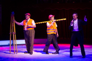 Paolo Finardi schickt sich an, das "hochvereehrte Publikum" zu begrüßen, als er jäh von einem Bautrupp - Gaston und Roli - unterbrochen wird. Die beiden, mit schwerem Gerät ausgerüstet, geben vor zunächst den Platz ausmessen zu müssen. Nach einigem Disput setzt sich der Manegensprecher durch und das schwungvolle Charivari nimmt seinen Lauf.