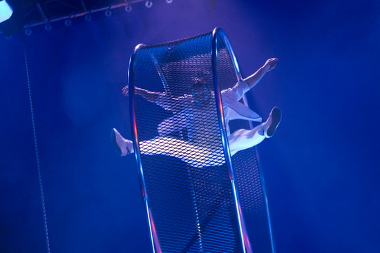Mit dem Duo Stoichev, nun mit Uber Ceballos als Partner von Mikel Stoichev, auf dem Todesrad startet die Nummernfolge temperamentvoll. Mit vielfältigen Aktionen beider Artisten in den Kesseln startet die Trickfolge. Fackeljonglage, Seil springen und Blindlauf außen auf dem Rad sind u. a. die Tricks, die das Publikum fesseln und den Atem anhalten lassen. Hohe Absprünge auf der Außenbahn des schnell drehenden Requisits sind der spektakuläre Abschluss dieser Darbietung.