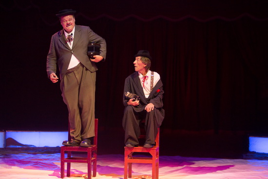 Das großartige Clownduo Gaston und Roli unterhält mit seinen feinen Späßen auch in dieser Saison das Publikum im Circus Nock bestens. Zunächst lässt „Scheich“ Roli sein „Medium“ Gaston Gedanken erraten. Eine Zahl, die ein Zuschauer verdeckt vorgibt, wird vom „Medium“ souverän angezeigt. Als Cowboy und Indianer entführen die Clowns einen Zuschauer in den Wilden Westen, respektive einen Zuschauer ans Messerbrett. Nachdem diesem Augen verbunden wurden nimmt der hinlänglich bekannte Vorgang seinen Lauf. Mit einem musikalischen Wettstreit auf Concertinas geht es zunächst in die Pause. Im zweiten Teil findet der Sketch seine Fortsetzung und einen überraschenden Ausgang. Den Disput zweier „Automobilisten“ um die Vorfahrt tragen Roli und Gaston auf ihren „musikalischen Jacketts“ aus.