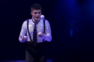 Michael Ferreri jongliert mit kleinen weißen Bällen und mit dreien startet er seine umfangreichen, temperamentvoll vorgetragenen Routinen. Nach und nach steigert er die Anzahl der jonglierten Requisiten bis auf sieben. Am Ende einer jeden Tour fällt ein weiterer neuer Ball einfach vom Himmel, respektive aus der Zeltkuppel passgenau in die Hand des Jongleurs, bzw. direkt vor seine Füße.