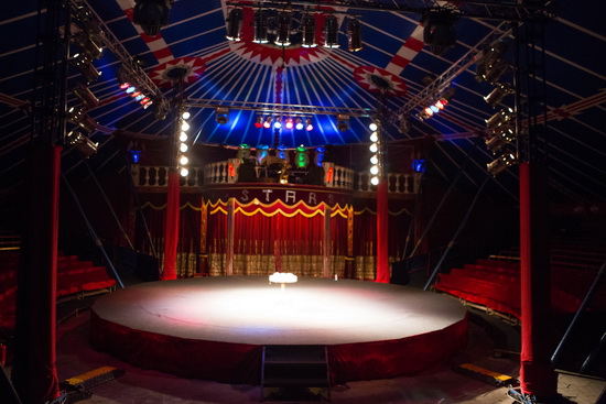 Im Chapiteau fällt sofort der große üppig verzierte Artisteneingang, der einst dem Circus Barelli sein unverwechselbares Aussehen gab, ins Auge. An Stelle einer Manege befindet sich eine circa neun Meter Durchmesser messende erhöhte, mit schwarzem Teppich belegte, Bühne. Den übrigen Raum des Chapiteau nimmt das zwölfreihige Gradin, dessen vordere Reihen mit rotem Samt überzogen sind, ein.