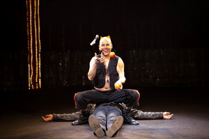 „Musizieren verboten“ heißt es streng und Tim Timothy versucht diese Anweisung durch den Wechsel auf die andere Bühnenseite aus zu hebeln. Doch die Obrigkeit in Gestalt von Joanes zeigt sich unerbittlich und so bedarf es einiger weiterer Finten und Wortgeplänkel, bis schließlich die Trompete ungestört erklingen darf. Clown Joanes erweist sich als kongenialer Partner, gerade auch wegen seiner mangelnden Kenntnisse der deutschen Sprache und so bekommt der mit viel Spielfreude dargebotene Klassiker zusätzlichen Drive. Eine „Opera“ inszeniert Tim Timothy mit drei Mitspielern aus dem Publikum. In munterem Spiel agieren die verschiedenen Charaktere und Timothy lenkt das turbulente Treiben zum Höhepunkt.