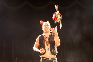 Perfektes "Sideshow-Feeling" präsentiert uns The Mighty Gareth in seinem zweiten Auftritt. Eine Salatgurke wird schwungvoll zerkleinert, so dass auch die Besucher der letzten Reihe sehen können, dass es sich um ein echtes scharfes Schwert handelt, dass sich seinen Weg durch die Kehle und Speiseröhre in den Magen des nervenstarken Künstlers bahnt. Eine vorab in die Manege gebetene Zuschauerin zieht das Schwert elegant wieder aus seinem Inneren. Ein weiterer, selten zu sehender Höhepunkt bildet das "schlucken" einer hellleuchtenden Neonröhre. Im nun komplett abgedunkelten Zelt flackern Teile des Halses gespenstisch rot leuchtend auf, wenn der illuminierte Glaskörper langsam den Weg in den Körper nimmt. Auch dieses Teil findet wieder, ohne Schaden anzurichten, zurück aus dem Körper des Artisten.