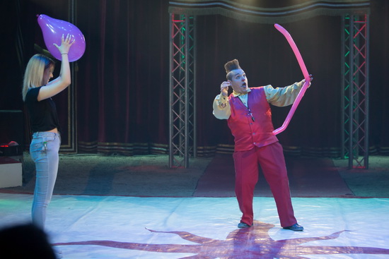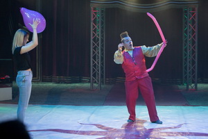 Clown „Hansi“, alias Karlito Frank, sorgt mit seinen zahlreichen Späßen für die Comedy in der Show. Mit seinem sympathischen Austrahlung findet der junge Mann im roten Stallmeisterfrack rasch Kontakt zum Publikum und der berühmte Funke springt über. Mit komödiantischem Talent und großer Spielfreude werden die Reprisen in liebevoller Weise ohne Längen interpretiert. „Vier Stühle“, Seil springen und Kunstschütze sind die diesjährigen Szenen, die mit freiwilligen Mitspielern in flottem Ablauf geboten werden.