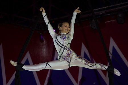 In poetisch anmutender Weise bietet Miss Nikita ihr Können am Luftring dar. Elegant und in harmonischem Ablauf reihen sich die Tricks aneinander.