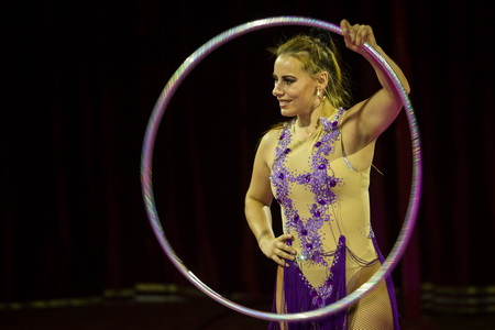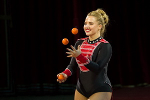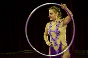 Mit zwei rasanten Darbietungen erleben wir Deborah Lauenburger in der Show. Zunächst präsentiert die sympathische Artistin temperamentvoll ihr Können mit den Hula Hoops. Temporeich erfolgen die abwechslungsreichen Routinen und schließlich kreisen mehr als zwanzig Reifen um ihren Körper.