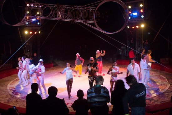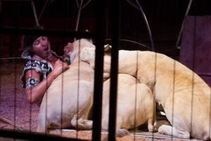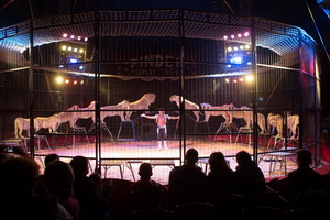 Nach der kurzen Begrüßung durch den neuen Sprechstallmeister des Circus, Judicael Vattier, der im weiteren Verlauf in angenehmer Weise die Show moderiert, beginnt die Soiree beim Cirque Pinder traditionell mit der Raubtierdressur, einem der Highlights der Show.