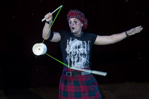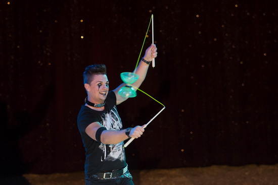 Diabolo-Jongleur Georgio Hromadko erobert mit seinem rasanten Auftritt die Herzen der Zuschauer im Sturm. In einem wilden Wirbel reihen sich die verschiedenen Figuren, deren Schwierigkeitsgrad permanent gesteigert wird, aneinander. Schließlich hält der sympathische junge Mann vier Diabolos zur gleichen Zeit souverän in der Luft.