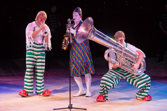 Ein klassisches Clowns-Trio ist unverzichtbarer Bestandteil des Programms bei Pinder. In diesem Jahr sind die „Pedro Rivelinos Clowns“ mit einer Reprise und ihrem Entrée zu erleben. Die Reprise, während des Aufbaus des Netzes für das Flugtrapez platziert, rankt sich um eine Laterne, deren Licht auf Berührungen des August reagiert.