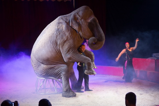 Im zweiten Programmteil hört Elefant „Maya“ auf seine Kommandos. In einem ruhigen Ablauf agiert der Dickhäuter in der Manege und auf einem Tonneau. Ein Hochsitzer auf dem Requisit bildet den Höhepunkt der Darbietung.