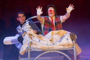 Der portugiesische Clown André überbrückt im interaktiven Ballspiel mit dem Publikum den Abbau des Zentralkäfigs. In einer weiteren Szene spielt er auf einem Dudelsack. Das musizieren auf einer normalen und, nach deren Wegnahme, auf einer Mini-Mundharmonika wird vom strengen Monsieur Loyal unterbunden. Doch dies hält den Clown nicht ab, auf der „Singenden Säge“ mit „My Way“ den Auftritt zu beenden. Als Finalnummer, wie oftmals in traditionellen französischen Circussen, erleben wir das große Entrée. Temperamentvoll und mit großer Spielfreude bringen André und David das in unserem Nachbarland sehr beliebte „Spukschloss“ Entrée. Voller Begeisterung und mit enormer Lautstärke nehmen die Kinder, vom Clown mit vielfachem „le fantôme n' existe pas“ („ es gibt keine Gespenster“) immer wieder animiert, lebhaften Anteil am Geschehen in der Manege. Beim einleitenden und den Auftritt abschließenden musizieren auf dem Saxophon spielt André allerdings derart neben der Melodie vom Band, wie wir es noch nie erlebt haben.