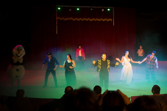 Vor der Pause haben die Eisprinzessin „Elsa“ und Schneemann „Olaf“ ihren großen Auftritt. Zum einspielten Titelsong des gleichnamigen Disney-Musicals sind die beiden zur großen Freude der kleinen Besucher leibhaftig in der Manege und entsprechend riesig ist die Nachfrage nach den in der Pause offerierten gemeinsamen Fotos.