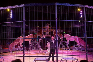 Die gemischte Raubtiergruppe von Tom Dieck jun. komplettiert die Auswahl an Dressurdarbietungen. Zwei Liger, zwei weiße Löwen und vier Tiger folgen dem Dompteur in die Gittermanege und mit einer Pyramide aller Tiere nimmt die umfangreiche Trickfolge ihren Beginn. Rollover dreier Tiger, verschiedene Hochsitzer und Sprünge der Tiger über die Liger sind weitere Elemente der Nummer. Auf einem Riesenrad rollen ein Liger und ein Tiger durch die Piste. Scheinangriff, erstklassige Hinterbeinläufer und Barrierensprünge aller Tiere beim Abgang vervollständigen die Dressurfolge.