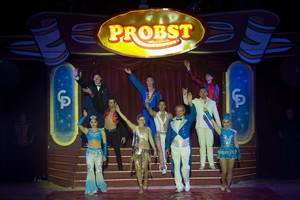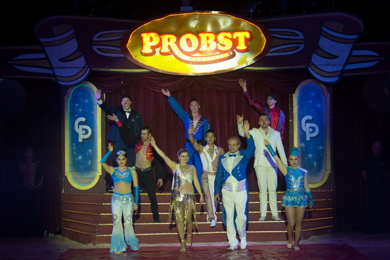 Noch einmal tritt Clown Joanes in den roten Ring und mit einer wehmütigen Melodie auf der Konzertina, die er tief in sich versunken spielt, deutet sich das nahende Ende der Show an. Das anschließende fröhliche Finale nimmt noch einmal Fahrt auf und lässt das geschickt zusammengestellte Programm des Circus Probst in geeigneter Weise ausklingen. Reinhard Probst stellt seine Artisten namentlich vor und verabschiedet sich von seinem Publikum. Der lang anhaltende, starke Applaus der Besucher zeigt die Zufriedenheit des Publikums mit dem Gebotenen.