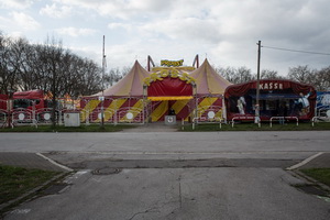Der Duisburger Circusplatz in unmittelbarer Nähe der Fußball-Arena bot dem umfangreichen Material des Circus den notwendigen Raum. Die rot-gelb gestreiften Zeltanlagen sind mit zahlreichen Lichterketten geschmückt und strahlen weithin. Der dekorative, üppig beleuchtete Zierzaun schließt die Frontseite des Platzes ab und wird nur durch das große Eingangsportal und vom charakteristischen Kassenwagen unterbrochen. Die Frontseite der Kasse wurde mit neuem Dekor versehen. Der umfangreiche Fuhrpark des Unternehmens nimmt den Raum zu beiden Zeltseiten an. Der rückwärtige Bereich des Geländes ist den zahlreichen Tieren vorbehalten. In fabrikneuen Stallungen haben die Pferde, Kamele, Zebras, Lamas, Rinder, Esel und Ziegen eine komfortable und geräumige Unterkunft.