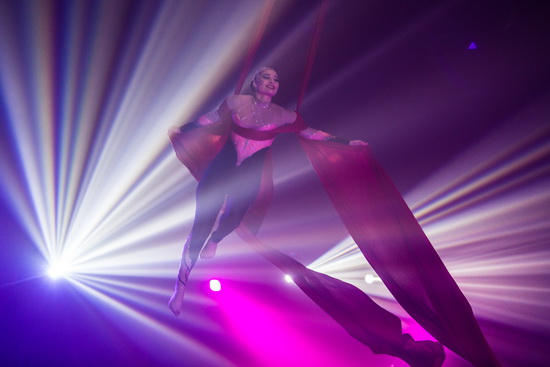 Mit der attraktiven Luft-Darbietung von Elena an den Strapaten-Tüchern gelingt der Einstieg in die Nummernfolge in erstklassiger Weise. Zahlreiche riskante Abfaller aus großer Höhe kennzeichnen den Auftritt, der seinen Höhepunkt in einem freihändigen Spagat zwischen den Tüchern findet.