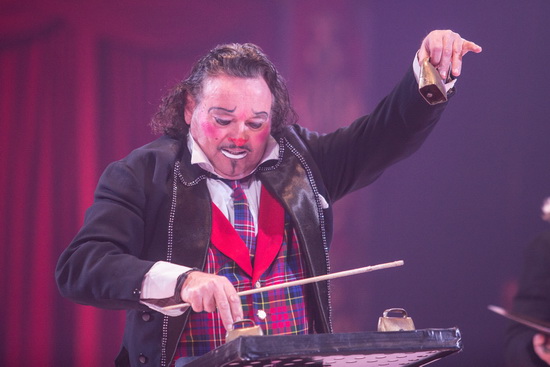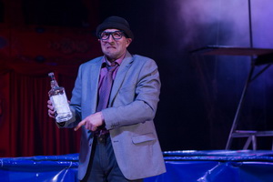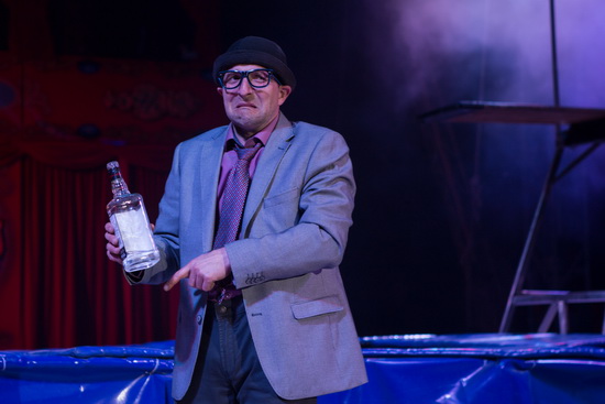 Sergui Munteanu, in seiner Rolle als „Jim Bim“ komplettiert die Auftritte der Direktionsfamilie. Als „betrunkener Artist“ komponiert er Kaskadenstürze, Trampolinakrobatik und einen Striptease zu einem flotten Slapstick-Act.