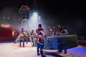 Der Circus Probst präsentierte sich nach zwei langen und schwierigen Jahren, in denen keine Reisetätigkeit möglich war, bei unserem Besuch in Duisburg im allerbesten Licht. Die Tournee 2022 führt in erster Linie durch den Norden unseres Landes und bietet unter dem Titel „Surprise“ ein wirklich überraschendes, spannungsgeladenes, flott ablaufendes Programm, in dem traditionelle und moderne Elemente sich erstklassig mit einander verzahnen.