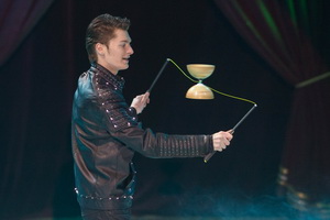 Zdenek jr. Präsentiert mit seinen Diabolos einen letzten Jonglage-Act in diesem Programm. Mit großer Dynamik lässt er die Diabolos tanzen. Eine breite Auswahl attraktiver und anspruchsvoller Tricks des Genres werden mit großer Souveränität ausgeführt und abschließend hält er fünf Diabolos zugleich in der Luft.