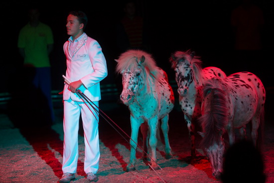 Weitere erstklassige Dressurdarbietungen sehen die beiden weiteren Söhne des Hauses, Antony und Bernado, als Vorführer. Sechs prächtige Tigerschecken-Ponys laufen unter der gekonnten Peitschenführung von Bernardo ihre Figuren. Antony hat je drei Kamele und Araber zu einer attraktiven Darbietung vereint. Sämtliche Dressurnummern des Circus Renz International zeichnen sich durch große Trickstärke und vorzügliche Präsentation aus. Souverän agieren die Vorführer und völlig fehlerfrei erfolgen die Aktionen. Mit erstklassigen Da Capo Steigern werden die verschiedenen Darbietungen gekrönt.