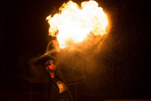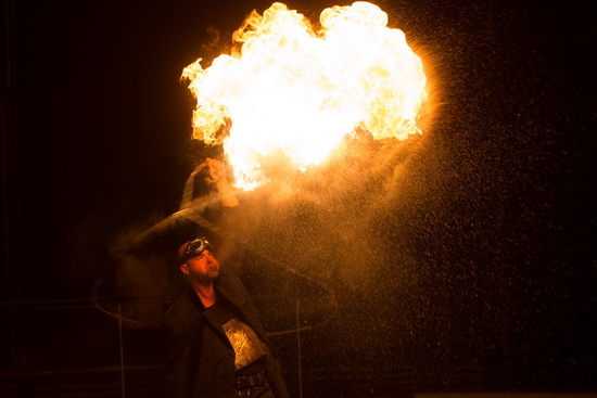 Die Finalnummer ist in dieser Spielzeit Germano Renz vorbehalten. Er präsentiert eine interessante Mischung aus Fakir-Show und Kubusjonglage. Hell lodernde Flammen auf einem Tisch im Hintergrund der Manege bilden den Rahmen für die ersten Aktionen mit einer Schleifhexe an einer Metallplatte auf der Brust des Künstlers. Hernach löscht er Fackeln im Mund und spukt meterhohe Feuersäulen in die Kuppel. Im weiteren Verlauf des Auftritts jongliert Germano Renz mit einem Röhrenkubus, wobei auch an dessen Spitze helle Flammen brennen.