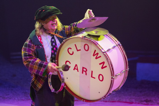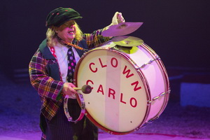 Clown Carlo, der zweiundachtzigjährige ist ein niederländisches Circus-Urgestein, erreicht mit seinen Späßen in erster Linie die kleinen Besucher. Zunächst versucht er einen Besen mit darauf gestapelten Gegenständen zu balancieren und jagt, als der Stapel kippt, einem Logengast einen mächtigen Schrecken ein. Im zweiten Programmteil versteht er es ausgezeichnet sich gegen die Sprechstallmeisterin zu behaupten, die ihn mit ihrem stoisch wiederholten „das musizieren ist hier verboten“ zu stoppen versucht.