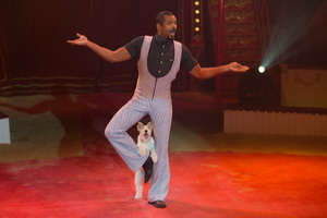 Jean-Rodrique Funke präsentiert in einem charmanten Auftritt einen Foxterrier. Außer den verschiedenen Sprüngen beherrscht der Vierbeiner auch den Spanischen Tritt und zeigt in verschiedenen Abläufen durchaus komödiantisches Talent.