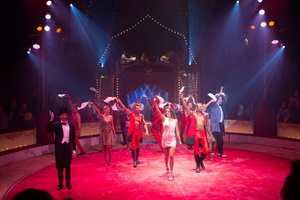 Im Chapiteau herrscht die vertraute Roncalli Atmosphäre. Der ursprüngliche Artisteneingang mit den steil ansteigenden seitlichen Treppen zum Musikerpodium, die edlen reich verzierten weiß-roten Logen und ein den Raum komplett füllendes rotes Bankgradin strukturieren den Raum; lediglich Balkonlogen sind hier nicht vorhanden.