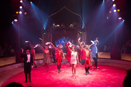 Wie stets beginnt das Event mit dem entwerten der Eintrittskarte und Eintritt auf das Gelände. Artistinnen erwarten die Besucher auf dem Weg ins Vorzelt, malen ihnen rote Herzchen auf die Wange und verzieren Nasenspitzen mit einem roten Punkt. Konfetti regnet hernieder und kleine Bonbons werden angeboten. Im Vorzelt spielt die Band und Jongleure zeigen ihre Geschicklichkeit mit Keulen und Ringen. Die Programm-Verkäuferinnen stehen in schmucken Uniformen vor dem Entrée des Chapiteau, bieten die Hefte strahlend lächelnd feil. Das Platzierpersonal empfängt die Gäste und Abendregisseur Massimiliano Sblattero wärmt zusammen mit Sergej Maslennikov die Zuschauer vor Programmbeginn an. Auf einen Sprechstallmeister wurde verzichtet und so bleiben die von einem Tonträger eingespielten üblichen Durchsagen und die Begrüßungsformel die einzigen gesprochenen Worte des Abends.