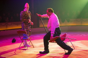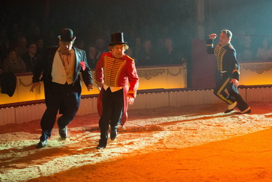 Nachdem die Clowns Sergej Maslennikov, Gabor Vosteen und Maurin - Hector – Rossi das Publikum angewärmt haben, gibt Betriebsleiter und Abendregisseur Marco Biasini die Manege frei.