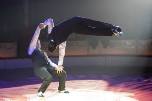 Die Curatola Brothers arbeiten ihre bekannte Hand-auf-Hand Darbietung nun in der Salto-Vitale Manege. Mit Temperament und Showmenship erfolgen die Tricks, die allesamt erstklassig ausgeführt werden.
