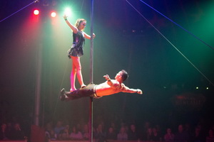 Auf die sensationelle und einmalige Trapez-Kür des Duo Sorellas mussten wir in der besuchten Vorstellung leider verzichten, da sich Jean-Rodrique Funke am Vortag eine Verletzung zuzog.