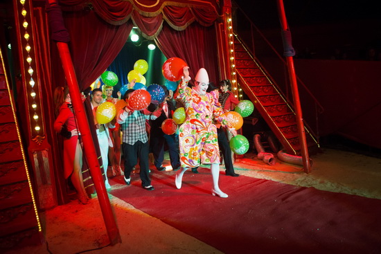 Das Event beginnt mit dem Eintritt auf das Circusgelände. Wie stets bei Roncalli werden während des Einlasses Nasenspitzen mit roten Punkten verziert und ebensolche Herzchen auf Wange gemalt, im Vorzelt agieren Jongleure und Clowns überraschen mit ihren Gags während die Band mit flottem Dixieland-Sound unterhält. Mit strahlendem Lächeln bieten die Programmverkäuferinnen in schmucken Uniformen die Hefte feil.