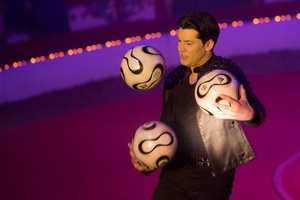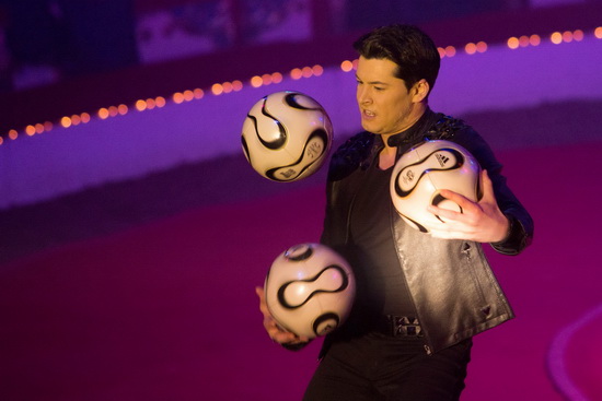 Der Auftritt von Fußball-Jongleur Jemile Martinez ist nun als zweite Darbietung zu erleben. Geschickt manipuliert der versierte Artist bis zu fünf Bälle in vielfältiger Weise.
