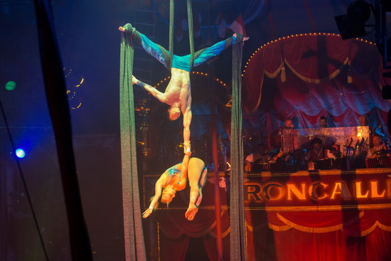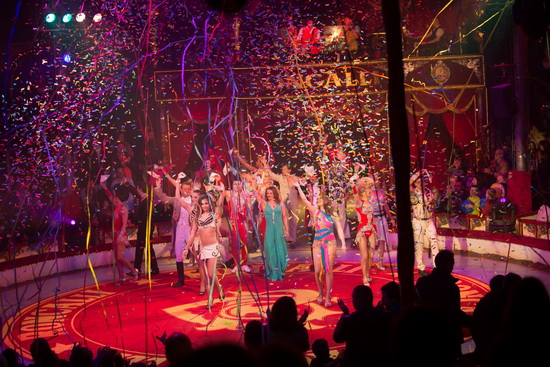Das Procedere beim Einlass bleibt unverändert – das Orchester spielt im Vorzelt und die Artisten geben Kostproben ihres Könnens. Rote Herzchen werden in erwartungsfrohe Gesichter gemalt, Nasenspitzen rot geschminkt und die ganze Szene in Konfettiregen getaucht.