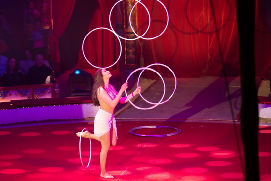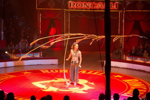 Geraldine Philadelphia bietet eine exzellente Hula Hoop Darbietung. Sie beschränkt sich nicht in genretypischer Weise darauf die Ringe um ihren Körper kreisen zu lassen, sondern kombiniert diese Abläufe in erstklassiger Weise mit dem jonglieren von vier und fünf Reifen. Einen schönen optischen Effekt bietet die abschließende Routine mit verschiedenfarbigen fluoreszierenden Ringen im Schwarzlicht.