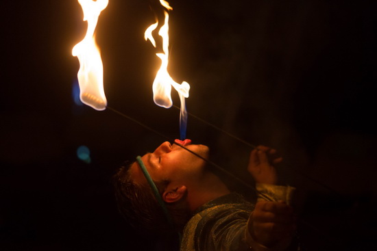 „Fakir Ali ben Hassan“, so der Manegenname von Marcel Frank, spielt mit dem Feuer. Immer wieder führt er brennende Fackeln in seinen Mund und verlöscht ihre Flammen, bzw. hält die Flamme im Mund um die Fackel wieder neu zu entzünden. Den Höhepunkt der Darbietung bilden wie stets kraftvoll ausgestoßene, riesige Feuersäulen.