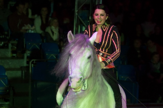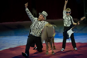 „Mr. Dalmatin“, Sergej Prostetsov, war mit seiner Pony-, Pudel- und Dalmatiner-Komödie erstmals in dieser Manege zu sehen. Temperamentvoll läuft die bestens bekannte Trickfolge ab.