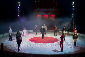 Vor allerbestens besetzten Rängen startet die Show mit einer temperamentvollen Ouvertüre. Sänger Yuri Kovalchuk übernimmt die Begrüßung und intoniert eine schwungvolle Melodie, derweil die Goty Clowns der Szene den stimmigen Rahmen geben.