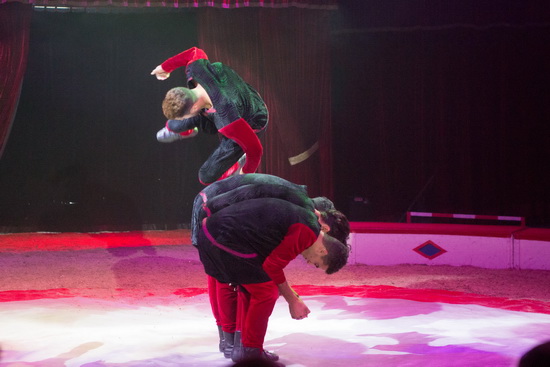 Die Mitglieder der „Said Desert Troupe“ sind als erste im roten Ring zu erleben. Schwungvoll bieten die marokkanischen Artisten ihr Können als Springer dar. Zahlreiche unterschiedliche Saltos, Fickflacks und Schrauben erfolgen in rascher Abfolge.